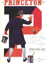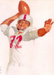 Lon produced hundreds paintings for four-part color covers used by colleges during his career. Each year, new ones were included in a catalogue that was sent to colleges allowing them to choose the covers for their home games. Once determined, annual press runs were made of 100,000's of 4 and 8 page folios with these covers to include national advertising from Chesterfield and others. These were then sent to the colleges as ordered. They, in turn, would take the partially completed folios to local printers who would overprint the team names and date of game on the cover, add related articles and rosters inside and then cut and staple them. More information click HERE.